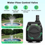 R : La pompe de fontaine solaire peut atteindre une hauteur de pulvérisation d'eau maximale de 8,5 pieds et un débit maximal de 480 GPH, selon l'intensité du soleil et la buse utilisée.