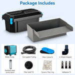 Solution de jeu d'eau tout-en-un avec pompe haute performance et filtre de bassin – Ce kit complet associe un déversoir de cascade en acier inoxydable 304 et un boîtier de filtration dédié pour bassin, pour une intégration parfaite. La pompe de 40 W (2 660 gal/h) produit un débit d'eau puissant ...