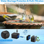 R : Cette fontaine solaire est équipée de 10 buses et d'un tuyau de 1,5 m permettant différents types d'arrosage. Vous pouvez personnaliser les modes de pulvérisation à double couche pour créer des jeux d'eau uniques pour votre bassin ou votre bain d'oiseaux.