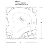 - Pond Underlayment (protective fabric) – 9.2′ × 9.2′