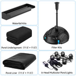 6′ x 6′ Pond Starter Kit | 5-in-1 Filter, Waterfall, Lights, Pond Liner & Underlayment