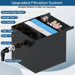 R : Les clarificateurs UV doubles intégrés aident à inhiber les algues et les agents pathogènes aquatiques, améliorant ainsi la clarté et la sécurité globales de l'eau, parfaits pour les poissons, les plantes et la faune.