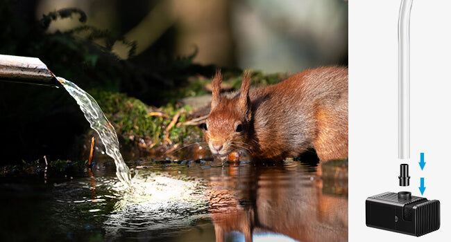 Connect the hose to pump water and DIY water features (the solar fountain comes with 5ft hose)