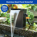 R : Le déversoir de la cascade est construit en acier inoxydable 304 de qualité supérieure, résistant à la rouille, aux intempéries et très durable pour une utilisation extérieure à long terme.