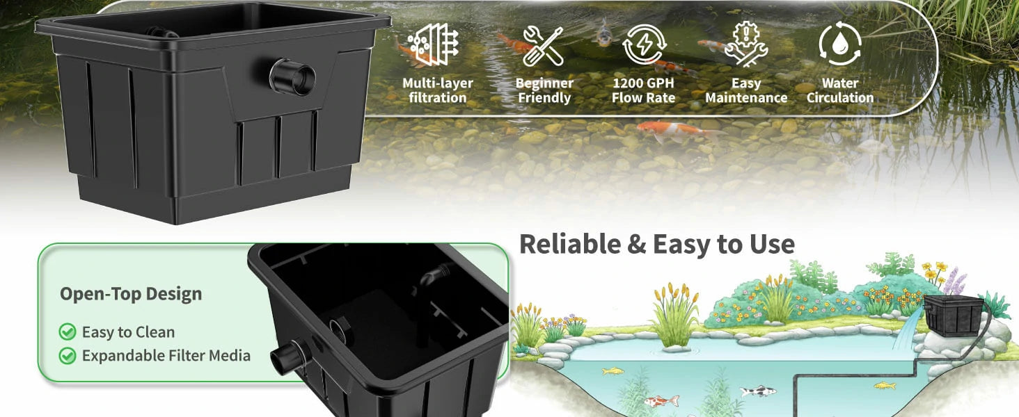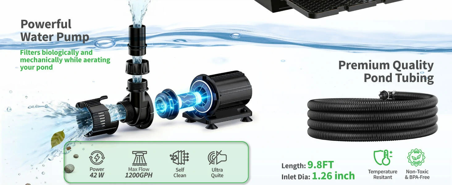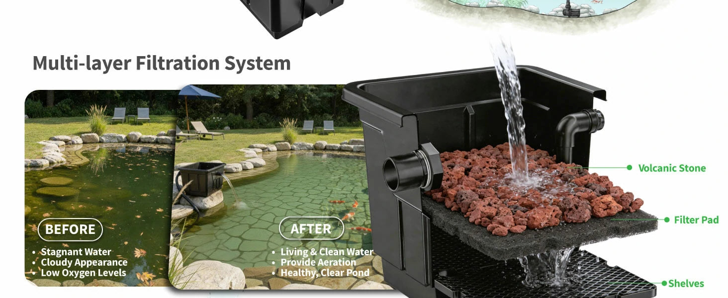 Effective Water Purification for Fish & Aquatic Plants: Effectively filters water impurities and purifies pond water, creating a clean and healthy living environment for fish and aquatic plants in koi ponds, garden ponds and fish ponds