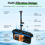 R : La pompe est conçue avec de multiples protections, notamment une admission résistante au colmatage, une construction durable pour une utilisation à long terme et une compatibilité avec les configurations d'étangs peu profonds ou de faible profondeur.
